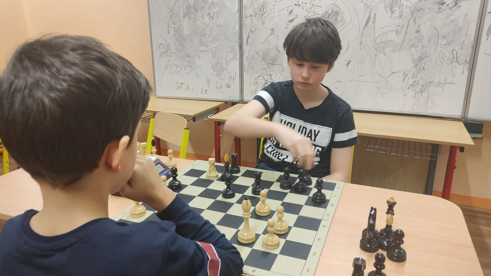 Vrcholom turnaja bolo pre nás posledné kolo, v ktorom sa na prvej šachovnici odohralo klubové derby medzi Filipom a Markom, z ktorého napokon vyšiel víťazne Filip. Už druhýkrát tak potvrdil rolu favorita tohto turnaja.